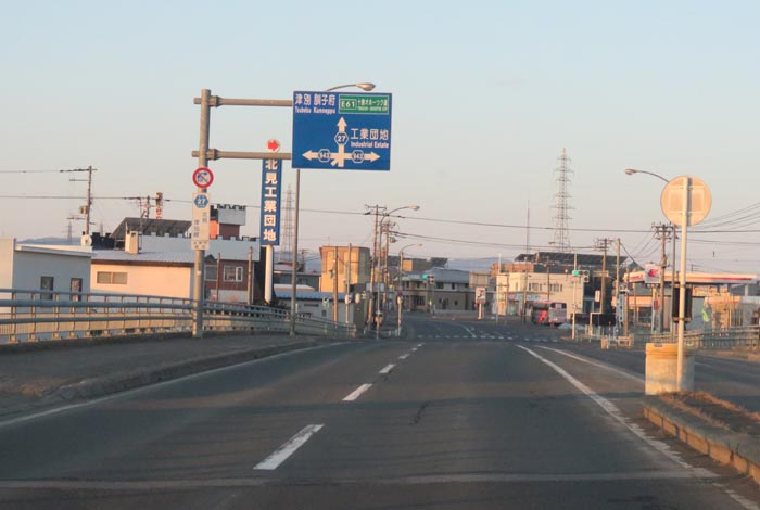 とん田通り、無加川橋を渡り錦町の南岸通り交差点