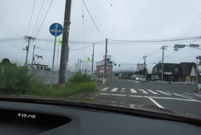 南岸通り、野付牛自動車学校前、前方はとん田通りの交差点