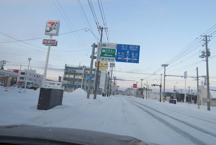 午前7時00分、北4条通りの国道39号交差点を右折で緑園通り方向