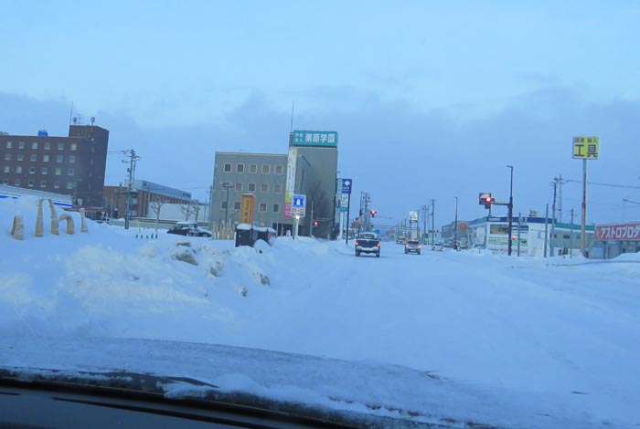 午前5時50分、北4条通りの国道39号交差点を右折で緑園通り方向
