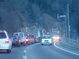 トンネルを抜けて北見側へ。下りの路面はアイスバーン。