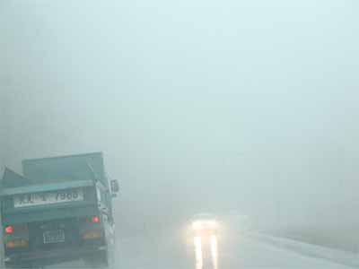 ここはサロマトンネルを抜けた下り坂。視界は30メートル程度。