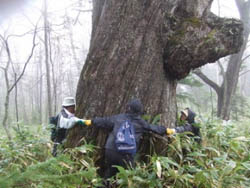 幹まわり5メートル。大人4人が手をつないでやっと一周できます。