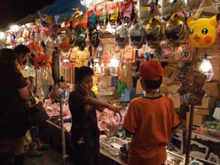 | 露店の明かりに照らされると、おもちゃたちは不思議と輝きを増します。 |
