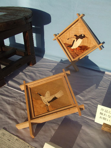 | 作品の紹介に続きます。 大人の部・特別賞「丹頂鶴・ペンギン」。 壁掛けのようです。 |