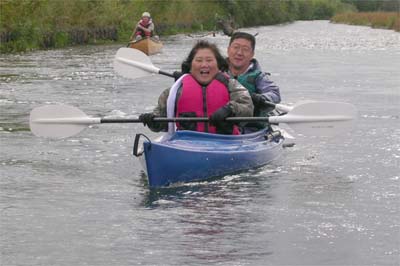 今年は8艇16人が参加して上湧別ラジコン飛行場から湧別川河口まで15キロを4時間かけてのんびりカヌーで下りました。初心者が多く途中で沈(転覆)するカヌーもあり緊張感もちょっぴりありましたが、普段はあまり見ることのないサケの産卵や遡上を眺めながらのツアーに参加者は大満足でした。