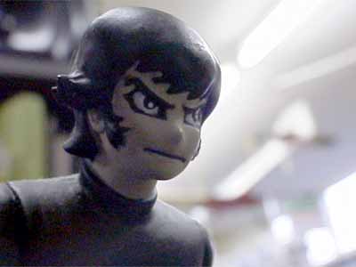| 不動明 もっとよく顔が見える写真もあったんですけど、怖い顔の明くんなので、逆光にしてみました。これはコミックのほうかな?アニメは結構ヒーローものでしたが、コミックはかなり怖かったです。最後は上半身だけになっちゃうんですよね。 |