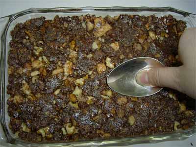 | 4. | バットかタッパーに油を塗り3を入れ、大きなスプーンの背でしっかり力を入れて押し固める。 |